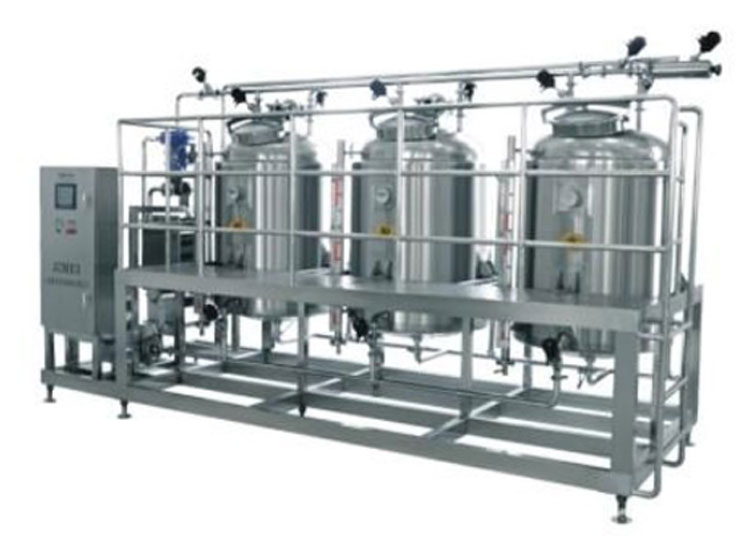 分體式CIP清洗系統(tǒng)就是清洗系統(tǒng)的罐子采用分體式結(jié)構(gòu),系統(tǒng)可單獨進(jìn)行酸洗、堿洗、熱水沖洗等工序,也可根據(jù)需要編制特定的清洗程序進(jìn)行全自動的清洗;不僅能有效的將設(shè)備清洗干凈,而且還能控制微生物生長;同時可根據(jù)客戶要求配置半自動和全自動控制系統(tǒng)。酸堿洗滌劑中的酸是指1%—2%硝酸溶液,堿指1%—3%氫氧化鈉在65℃—80℃使用。因此,酸罐和堿罐一般是采用不銹鋼SUS316L材質(zhì),耐酸堿腐蝕。CIP清洗系統(tǒng)能保證一定的清洗效果,提高產(chǎn)品的安全性;節(jié)約操作時間,提高效率;節(jié)約勞動力,保障操作安全;節(jié)約水、蒸汽等能源,減少洗滌劑用量;生產(chǎn)設(shè)備可實現(xiàn)大型化,自動化水平高;延長生產(chǎn)設(shè)備的使用壽命。